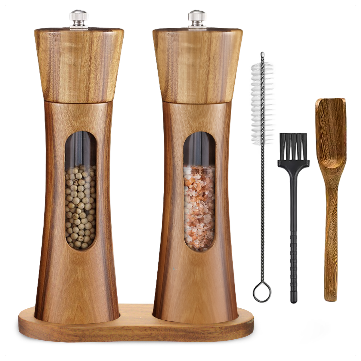 Acaciahout is duurzaam, hard en bestand tegen vocht, waardoor het perfect is voor keukengerei zoals pepermolens. Het heeft
